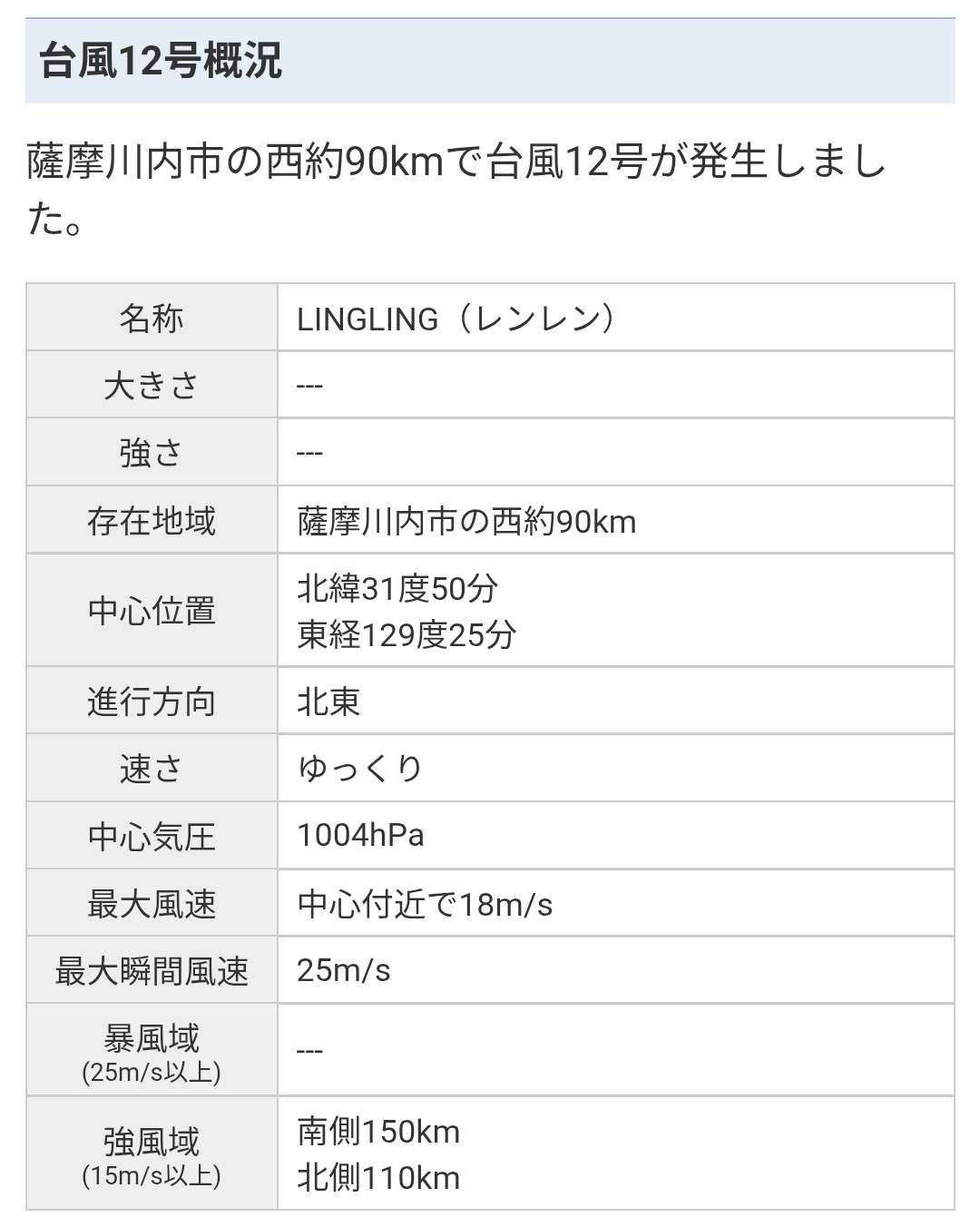 薩摩川内市の西約90kmで台風12号が発生しました。