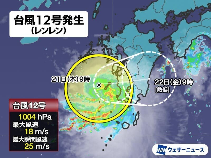 台風12号(レンレン)発生 九州は今日~明日にかけて大雨のおそれ