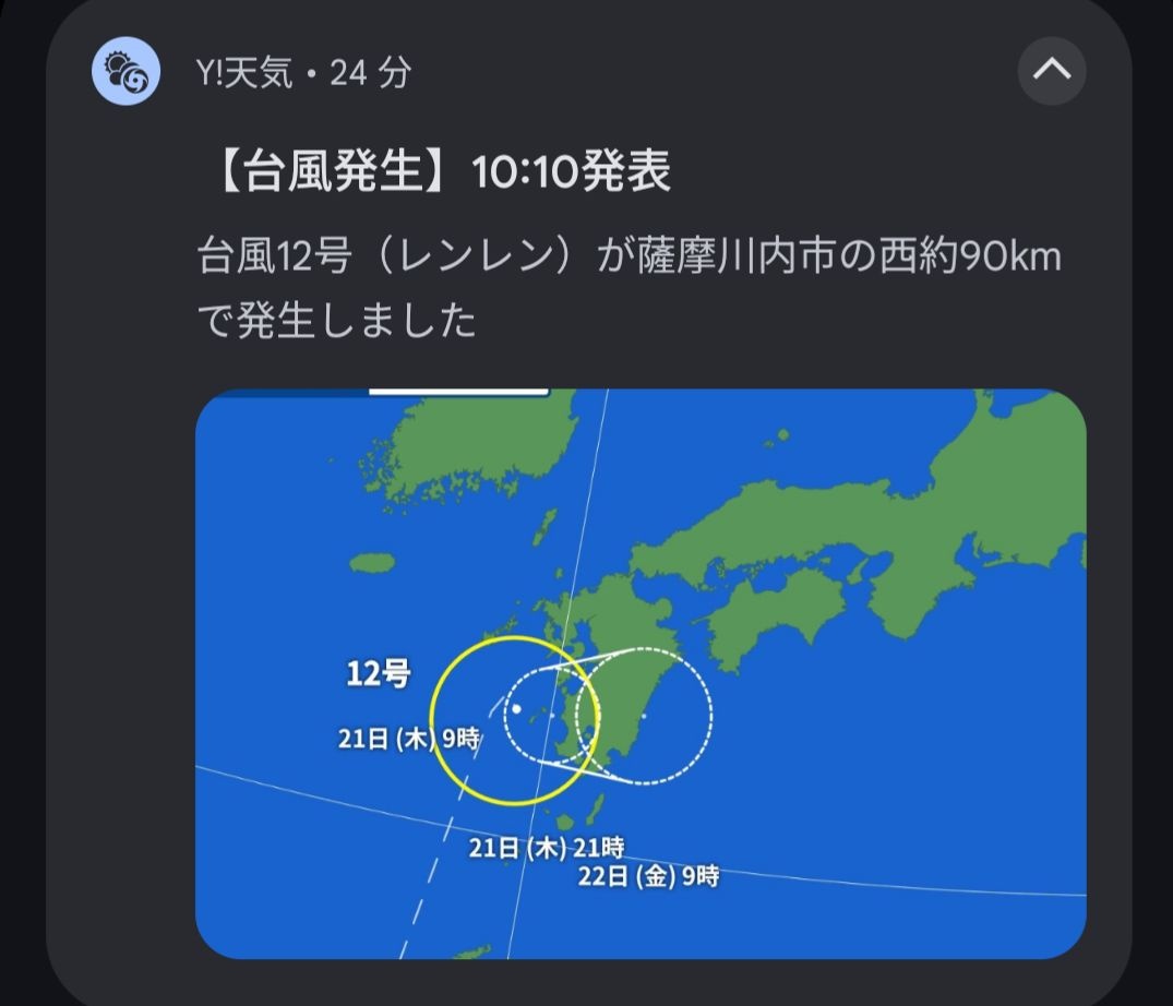 台風に昇格しただけで大きな雲の塊はずっと移動してきてたですやん