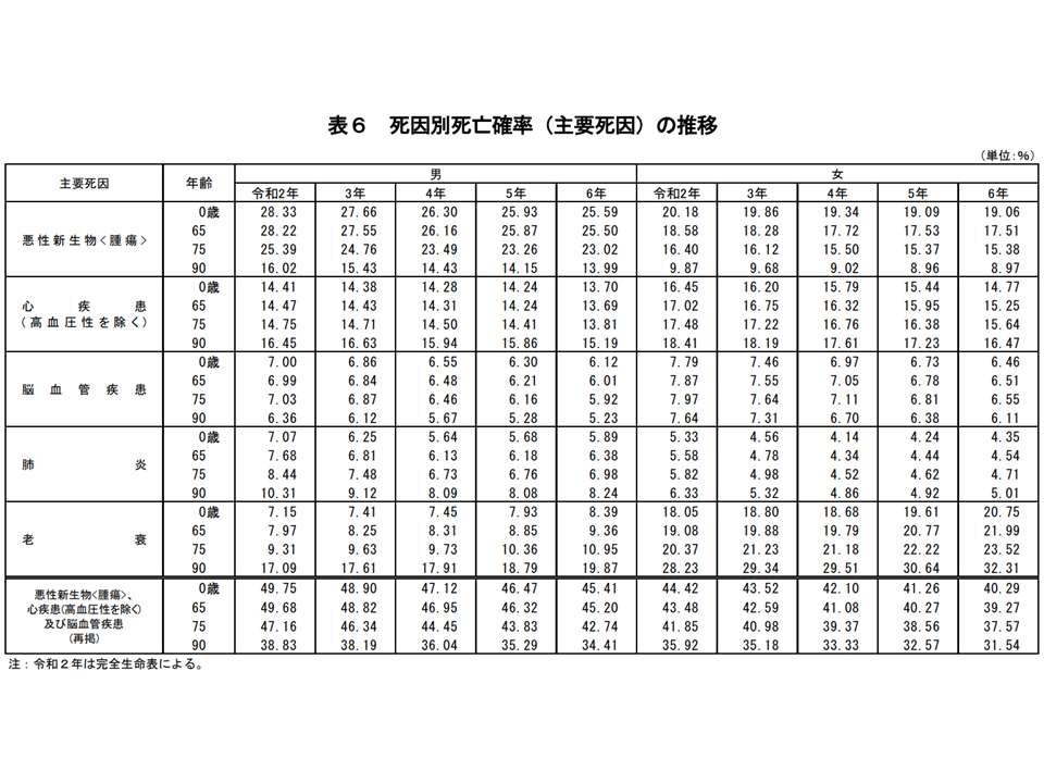 老衰による死亡がさらに増加し、女性では前年に続き死因第1位、平均寿命は男性81.09年・女性87.13年―2024年簡易生命表