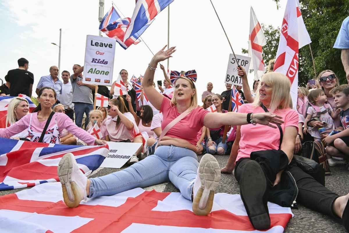 南東部ハートフォードシャーのホテル前に22日、住民ら約300人が集まり、怒りの声を上げた。
