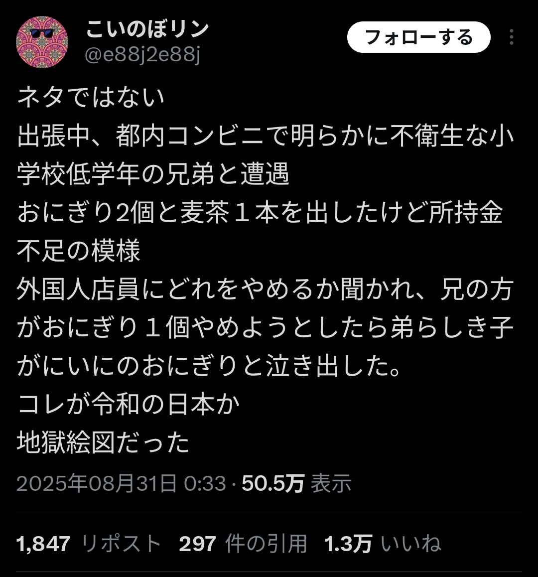 貧困国日本、小学生の兄弟がコンビニでおにぎり2つ買う金がなく号泣…