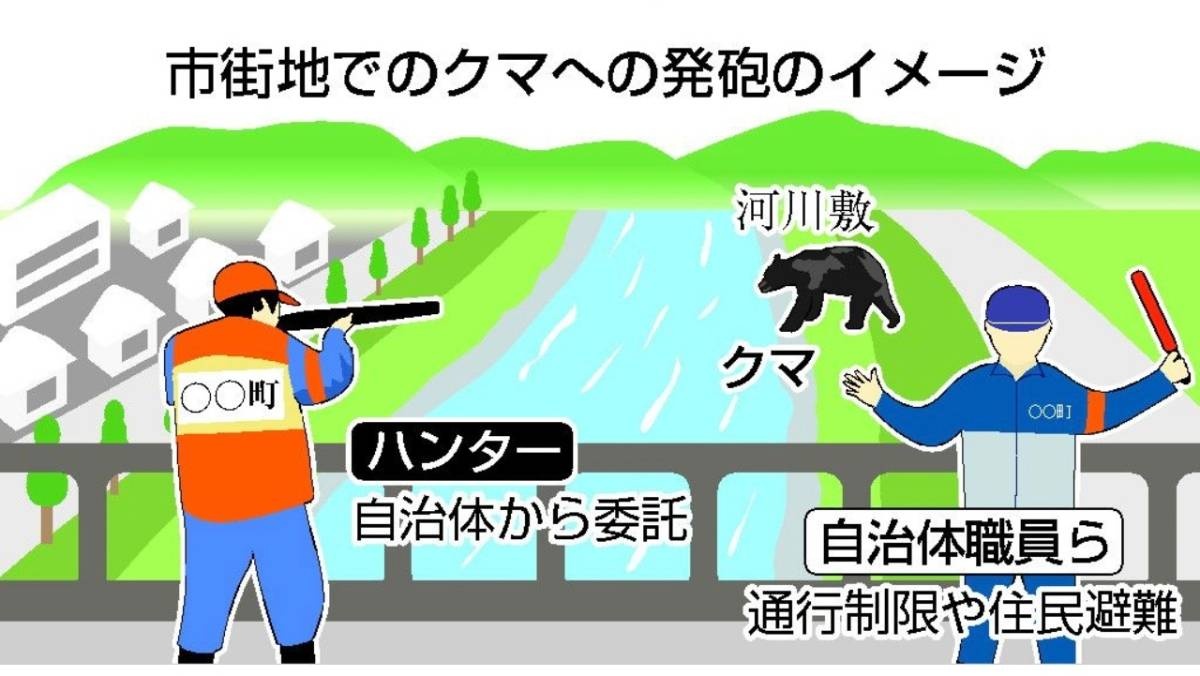 現行制度では、住宅密集地での銃の使用は原則として禁止されており、危険が差し迫って警察官が命令を出した場合に限って認められる。ただ、判断の遅れで発砲のタイミングを逃す事例もあったことから、市町村から委託を受けたハンターによる捕獲を行えるようにする。