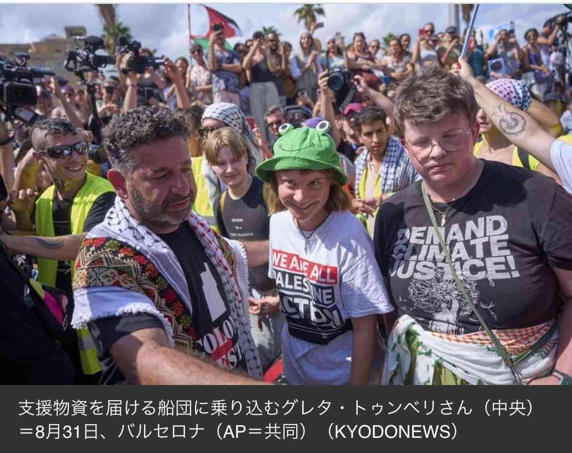 後にイタリアやチュニジアからも船が合流し、最終的に70隻ほどになるという。グレタさんは6月にもガザを目指したが、イスラエル当局に船が拿捕され、イスラエルから国外退去となった。