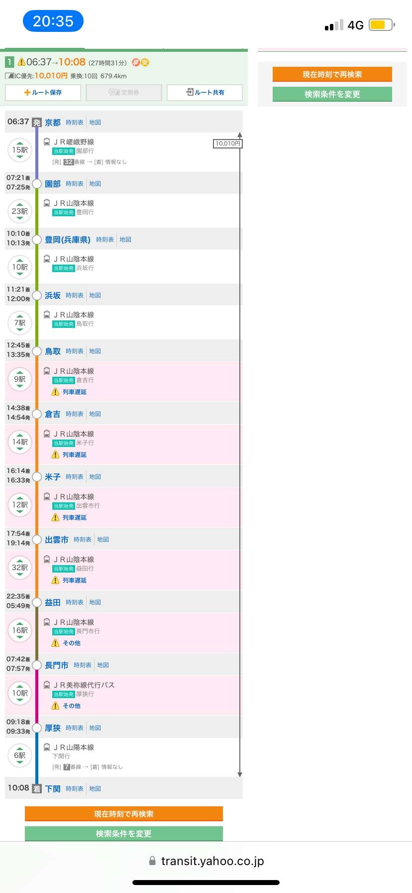 鹿児島本線→山陰本線と城崎温泉目指して台風と追っかけっ子した