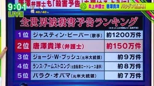 2位からは挨拶代わりに殺害予告されないとたどり着けない件数やからな