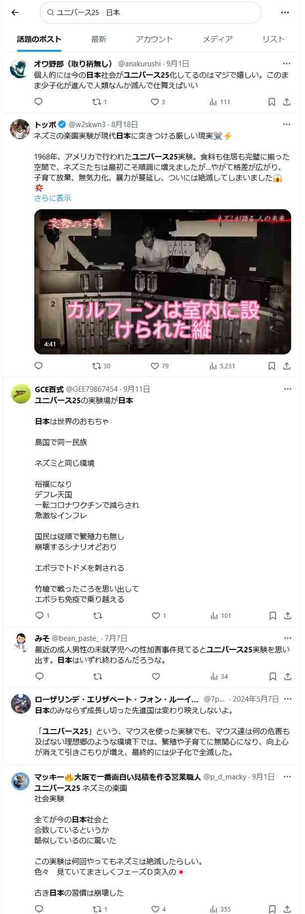 楽園実験「ユニバース25」と今の日本が酷似していると日本人さんの間で話題になってしまう…😲