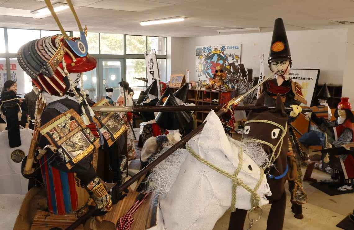 戦国武将・吉弘統幸の生涯を紹介するかかし50体 出身地の豊後高田市都甲地区有志が制作