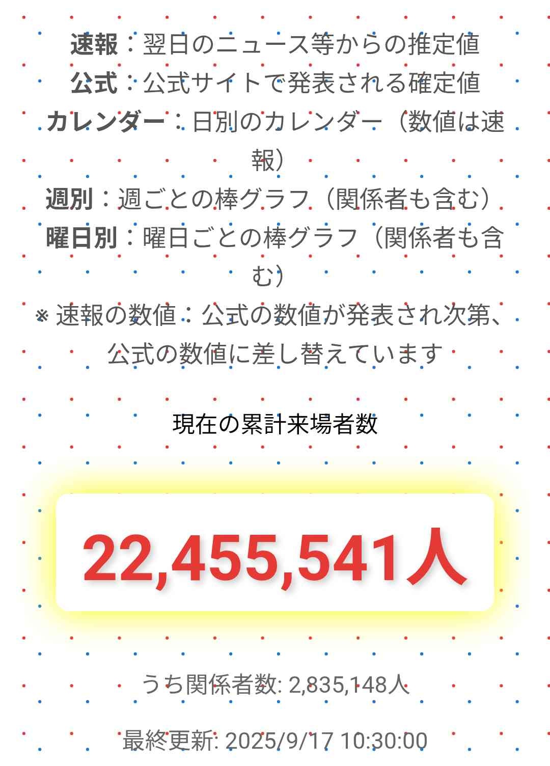 大阪万博最終日までチケット完売、総来場者数2860万人前後か