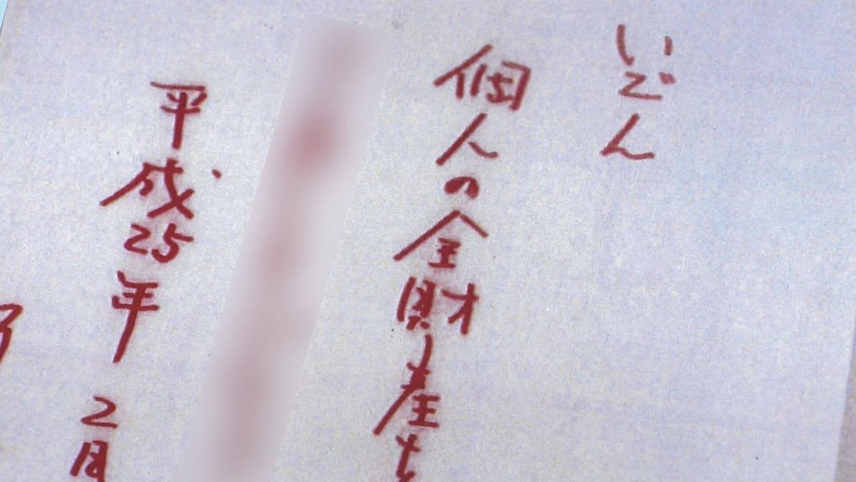 遺言書は、野崎さんの死後、野崎さんが生前に経営していた会社関係者が預かっていたもので、赤色のサインペンで書かれ、野崎さんの「氏名」とともに「いごん 全財産を田辺市にキフする」などと記されていました。