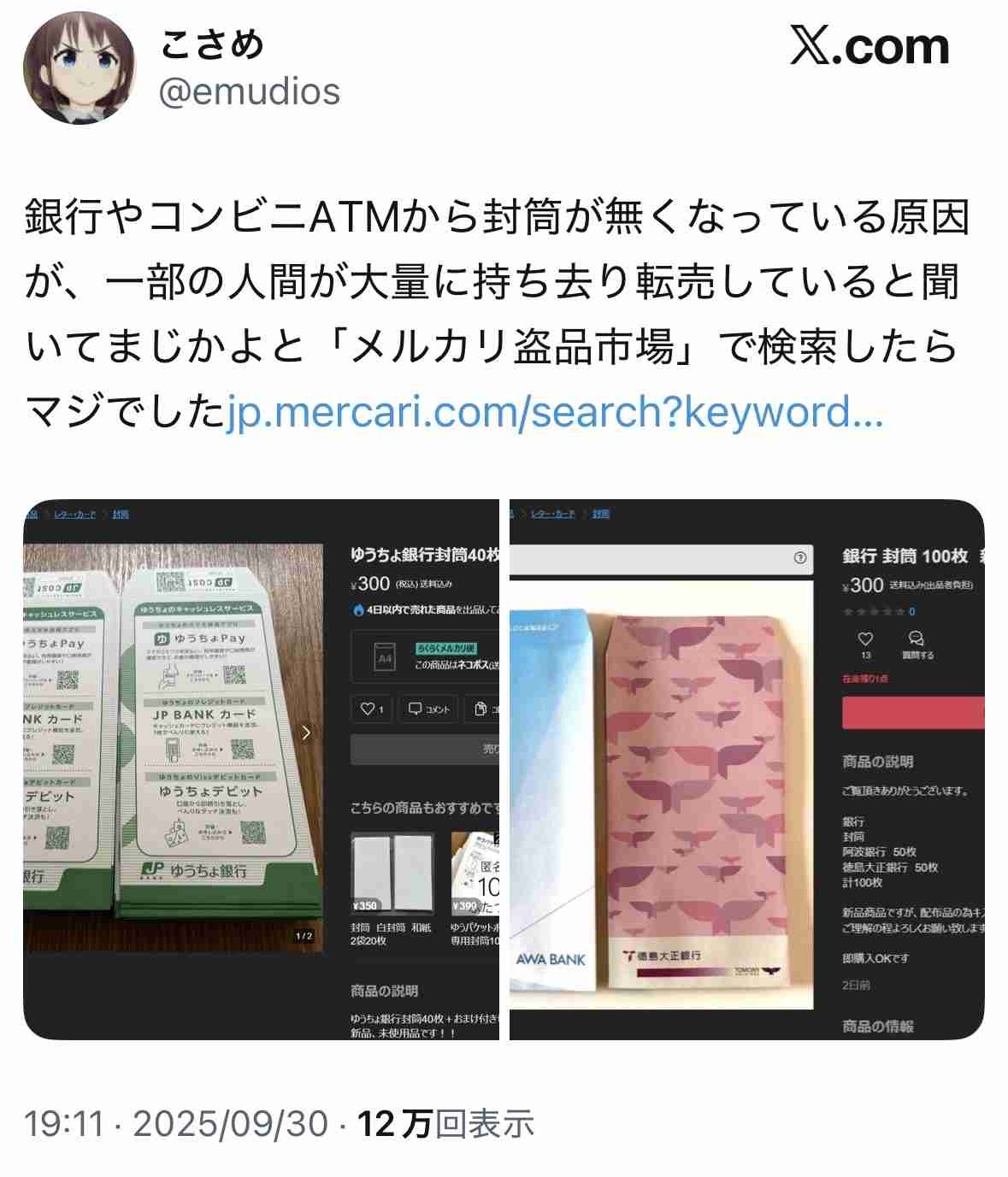 【大悲報】日本人さん、貧し過ぎてATMコーナーの封筒すら転売する