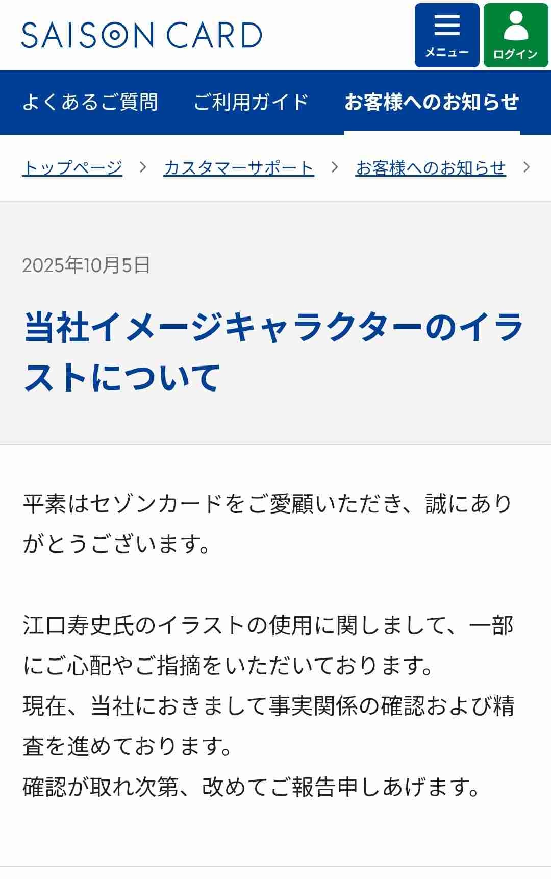 【江口寿史悲報】セゾンカード、お気持ち表明キタ───(゚∀゚)───!!