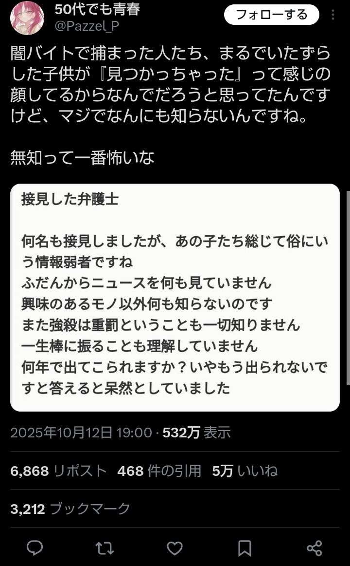 弁護士「何名も接見しましたが、あの子たち総じて俗にいう情報弱者ですね。