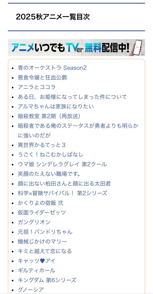 2025秋アニメまとめ一覧|10月放送開始 新作アニメ・再放送アニメ情報