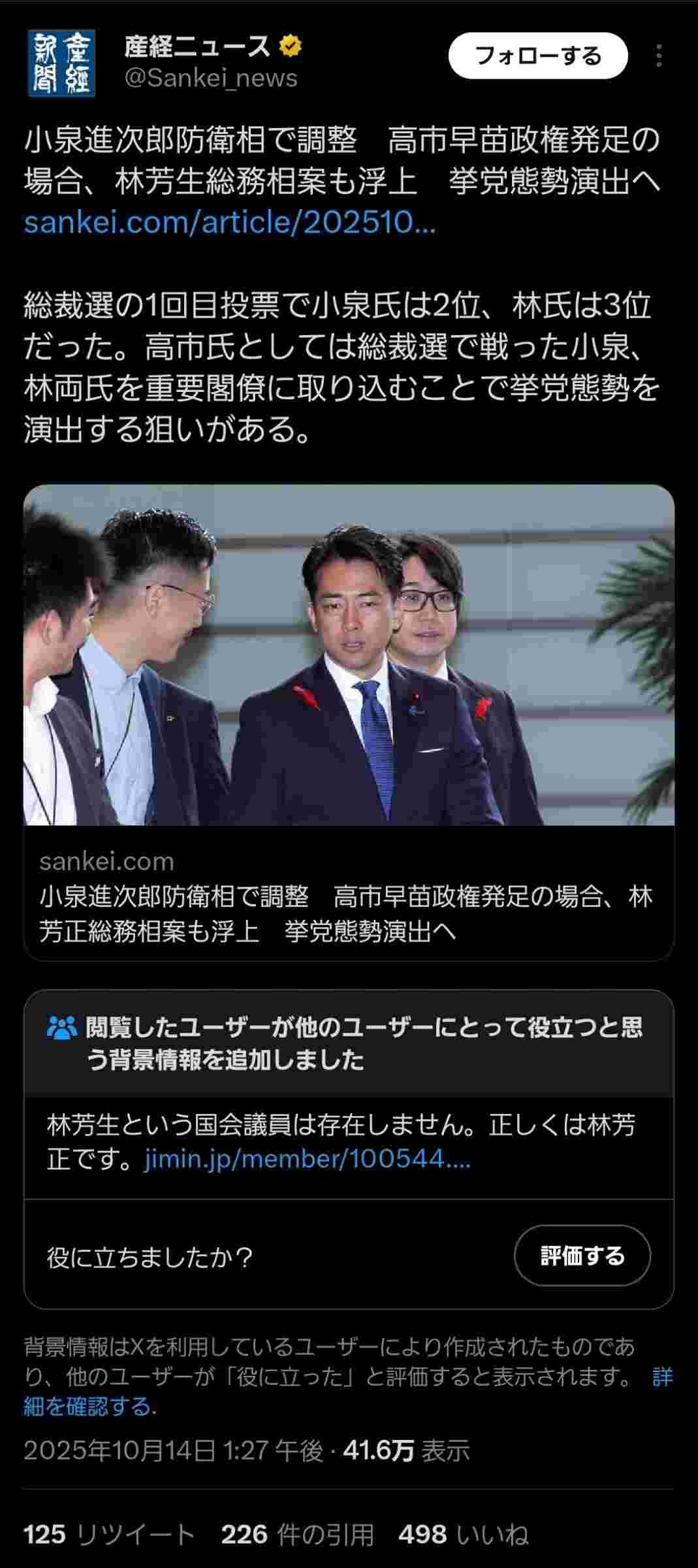「はやしよしまさ」と入力して「林芳生」と変換されることは想定しづらい https://www.sankei.com/article/20251014-LRHL345WKBLRXD4YSG42RBPVFQ/