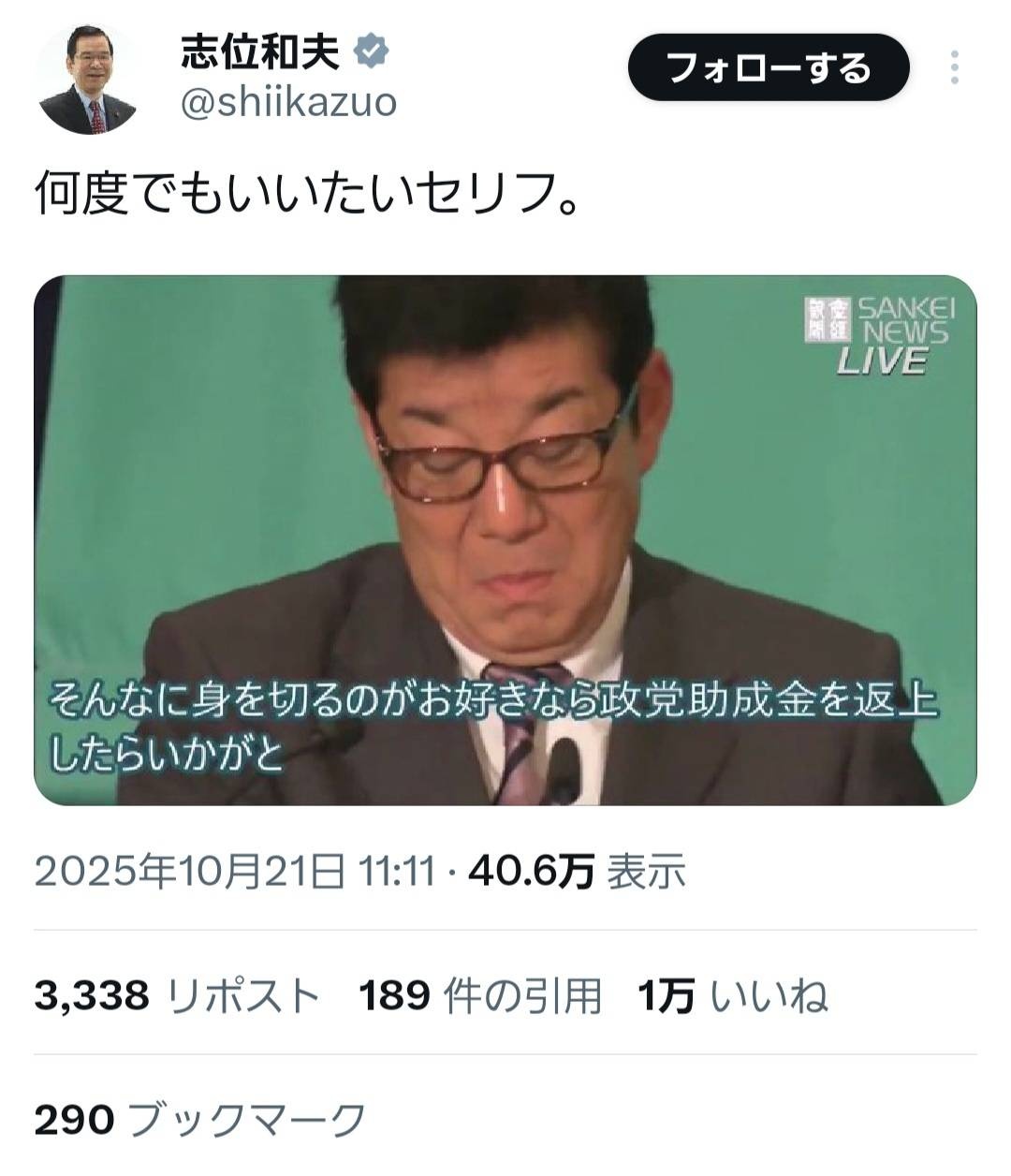 さもしい顔して政党助成金受け取ってるくせに文句言うなよw