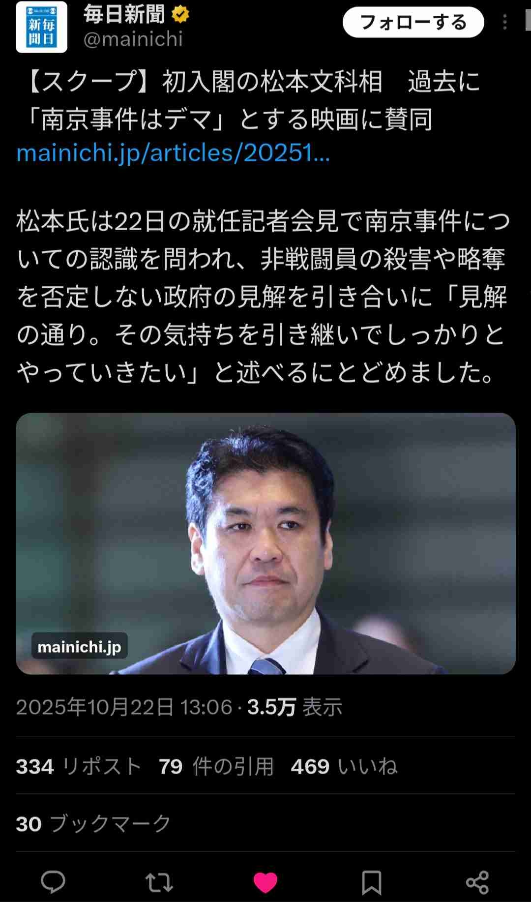 【号外】初入閣の松本文科相に毎日新聞砲が炸裂!!高市内閣、初日終了決定www