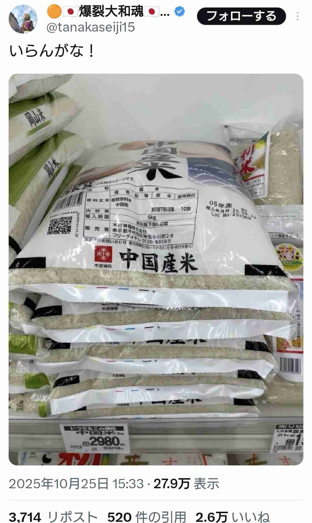 去年の中国産米って…