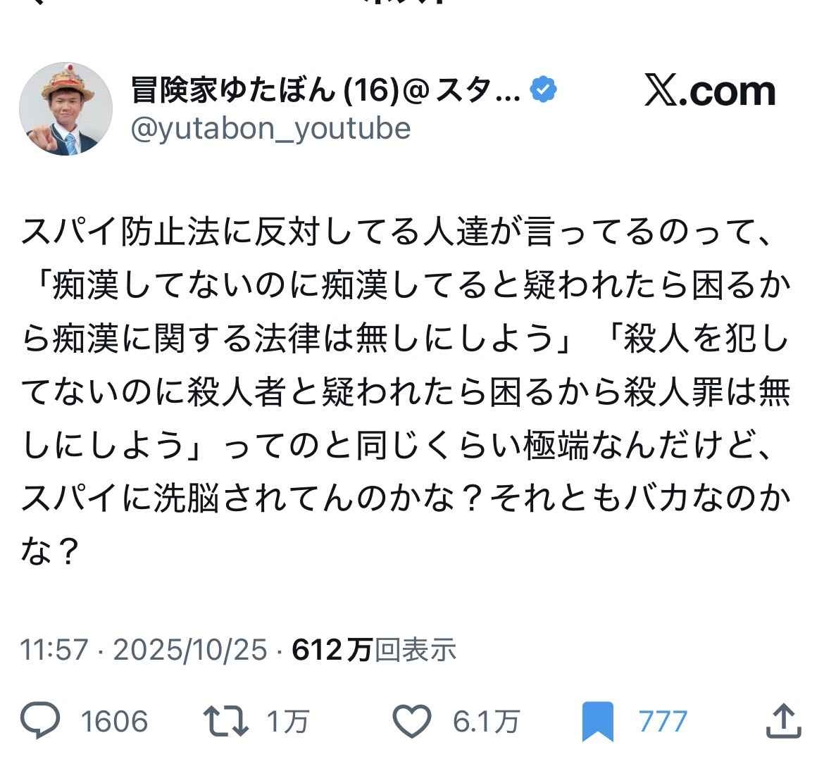 この法律に反対してるからスパイなんだろって言ってる人が賛成してるから危なくて嫌なのです