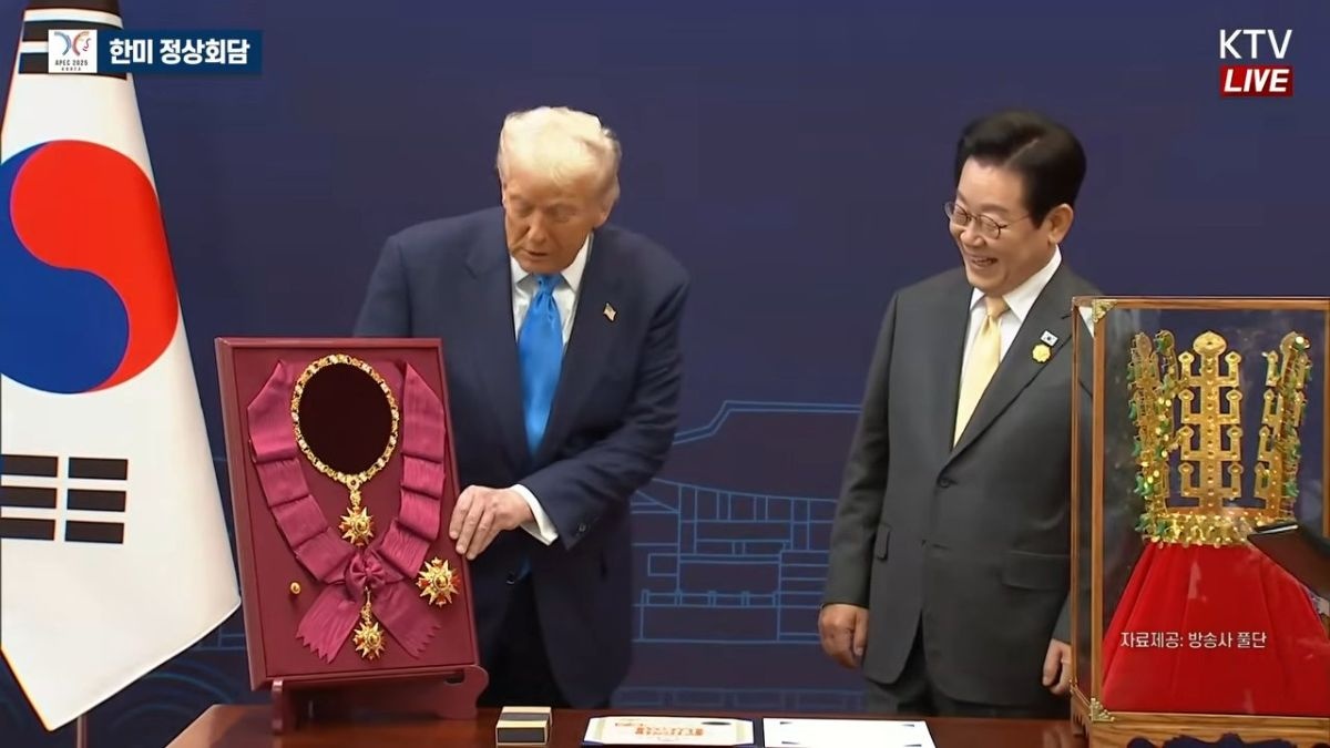 【画像】韓国・李大統領、トランプに黄金の冠👑を贈呈www