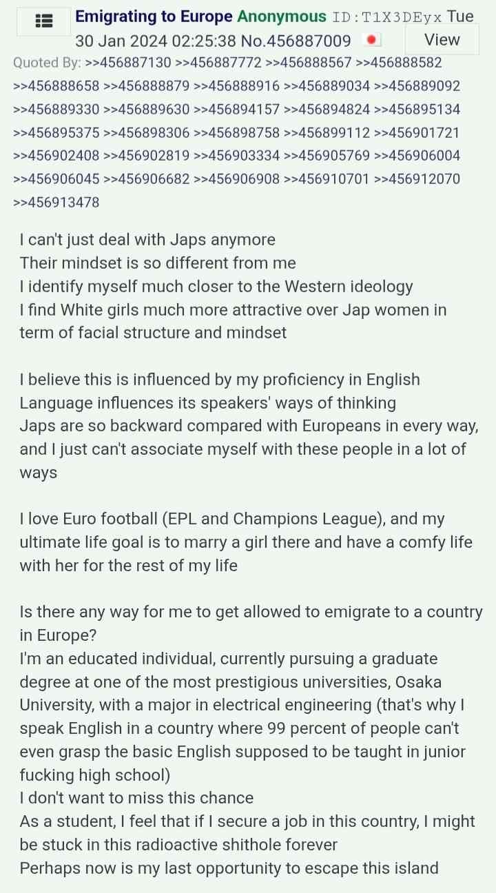 欧州に移住して白人女性と結婚して幸せな家庭を築きたい。