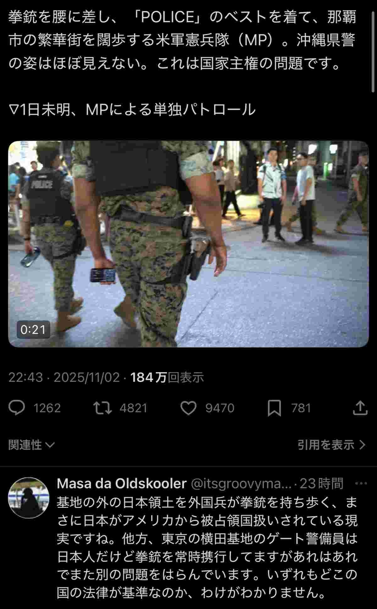 いや…ハメを外して暴れてる米軍がいたら抑止するのは沖縄県警だろ