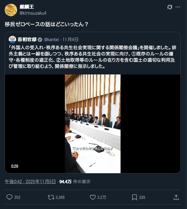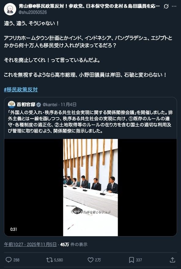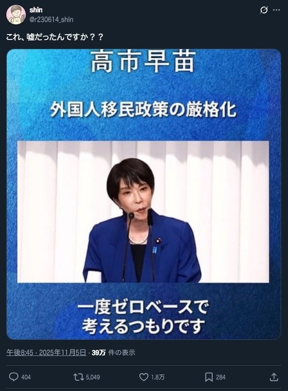 ほぼ石破・岸田路線をそのまま引き継いでこれまで通り移民を許すとのこと
