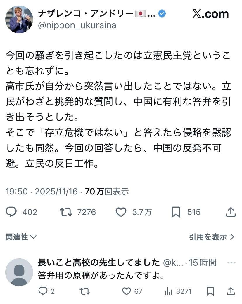 だとしたら立憲に同調してる高市が完全に反日にならないか