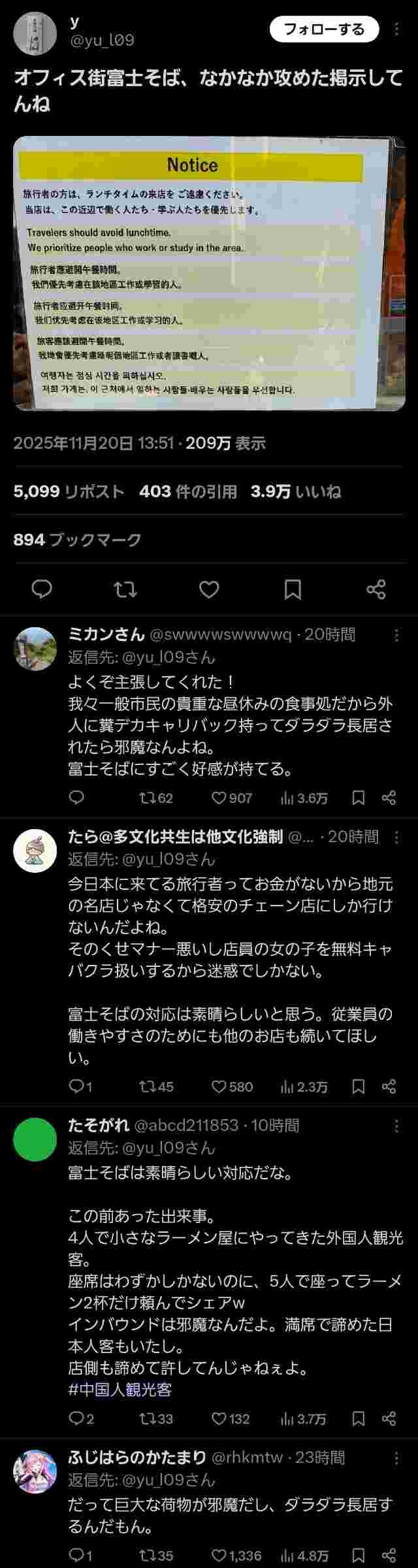 昔ながらの早朝からやってる蕎麦屋の動画とか見ても普通に英語やハングルのコメント見るから日本人の労働者が行くような店にも来てんだろうなぁ