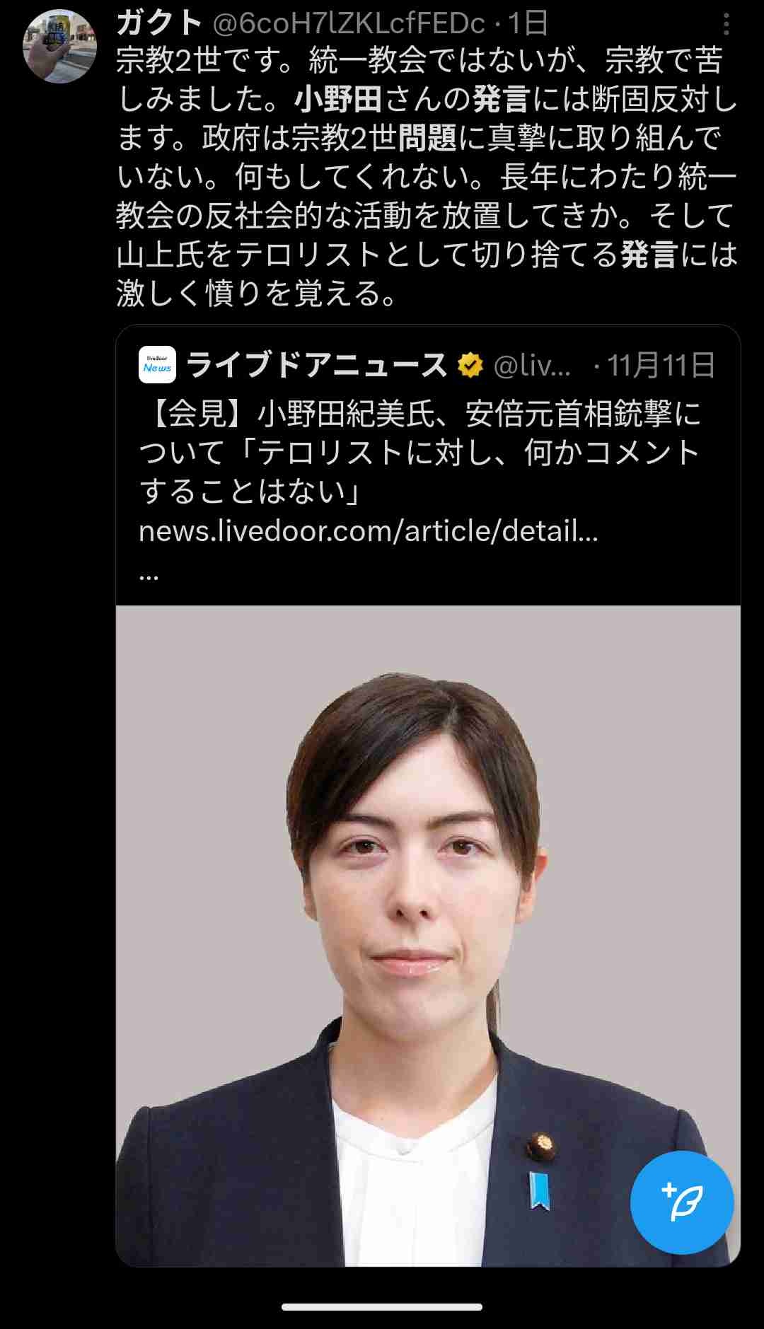 小野田大臣「山上はただのテロリスト」政府によってテロリスト公認