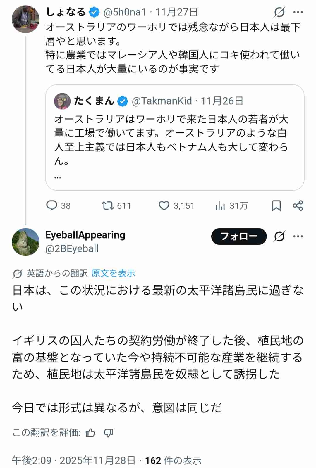 オーストラリアでは日本人は研修生だから仕方ないだろ