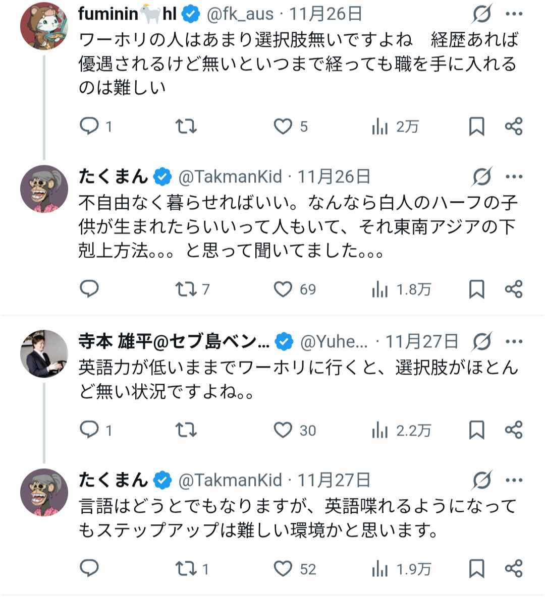 まあこういう奴は日本でもまともなスキル持てないだろうしお似合いの待遇だよ