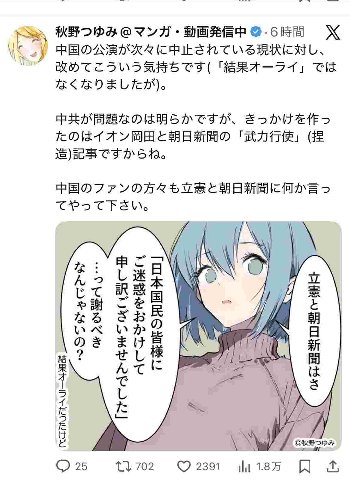 中国でのコンサートを中止に追い込まれたアーティストに対して散々自己責任って煽ってるの見てひいたわ