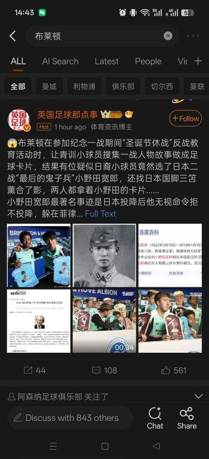 共産党機関紙、人民日報系のタブロイド紙、環球時報の投稿に寄せられた、最も多くの「いいね!」を獲得したコメントには、「プレミアリーグにはファシストを支持するチームがあるのが現実だ」と記されていた。