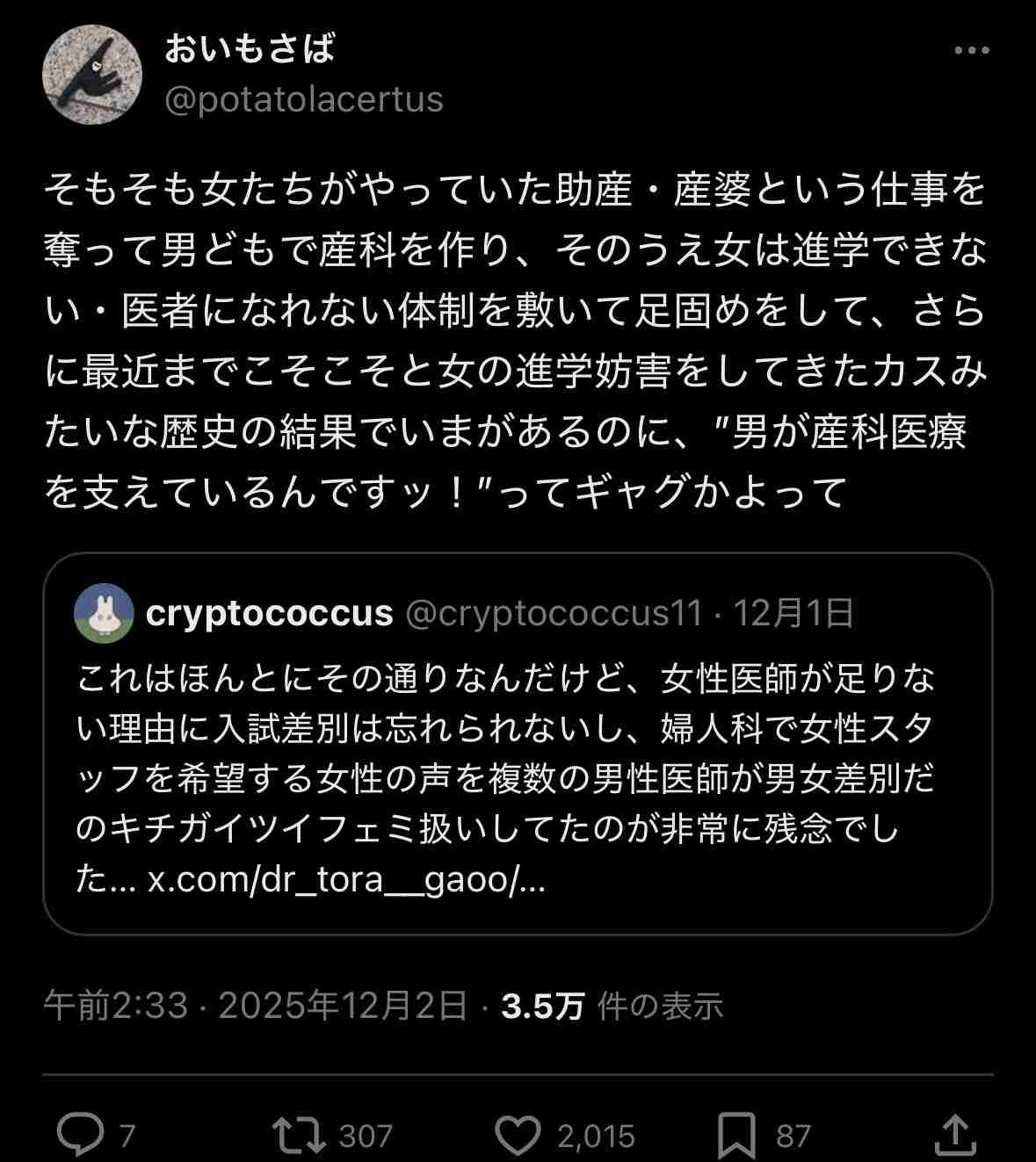 見事なまでのツイフェミの見本