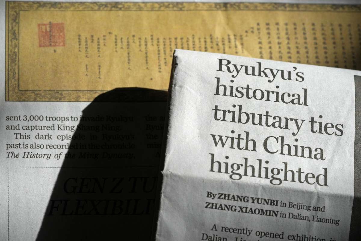 【北京共同】2日付の中国国営英字紙チャイナ・デーリーは「琉球王国が歴史的に中国の属国だったことや日本による琉球侵略」を示す「重要な証拠」が遼寧省の博物館で公開されたとの記事を1面に掲載した。高市早苗首相の台湾有事に関する国会答弁以降、中国メディアは沖縄県の日本帰属に疑義を呈する報道を続けており、日本を揺さぶる狙いとみられる。
