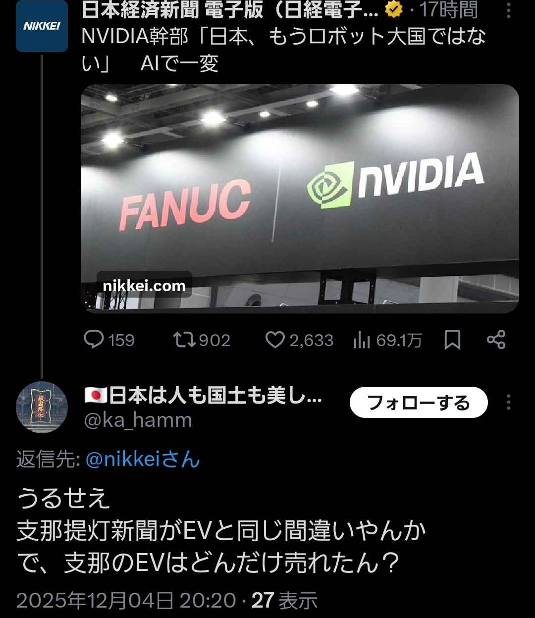 大体NVIDIAがこう言ってしまった以上は日本の関連銘柄にも影響出かねないし購読者に知らせるのは経済系メディアとして当然