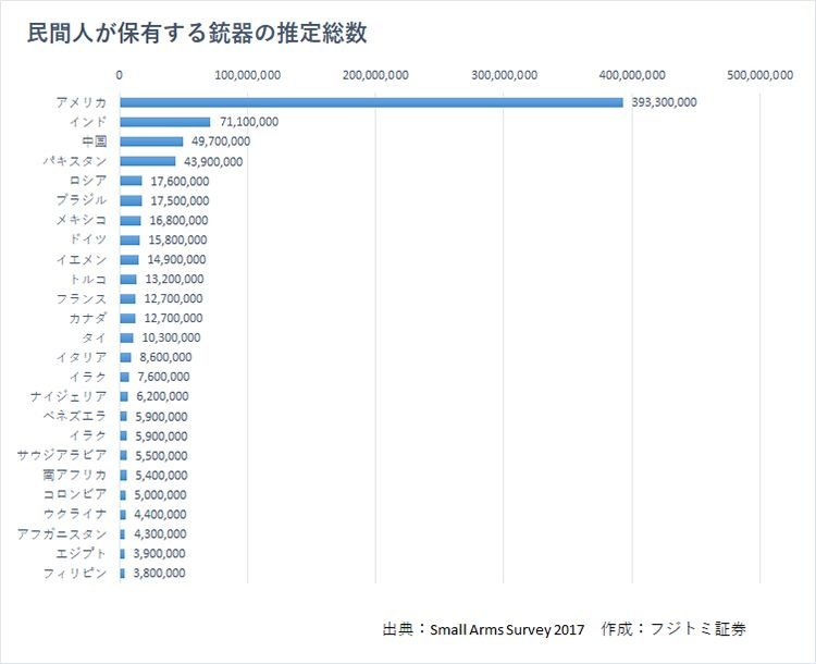 かなり前に小説でアメリカにある銃の総数は人口より多いと見たから
