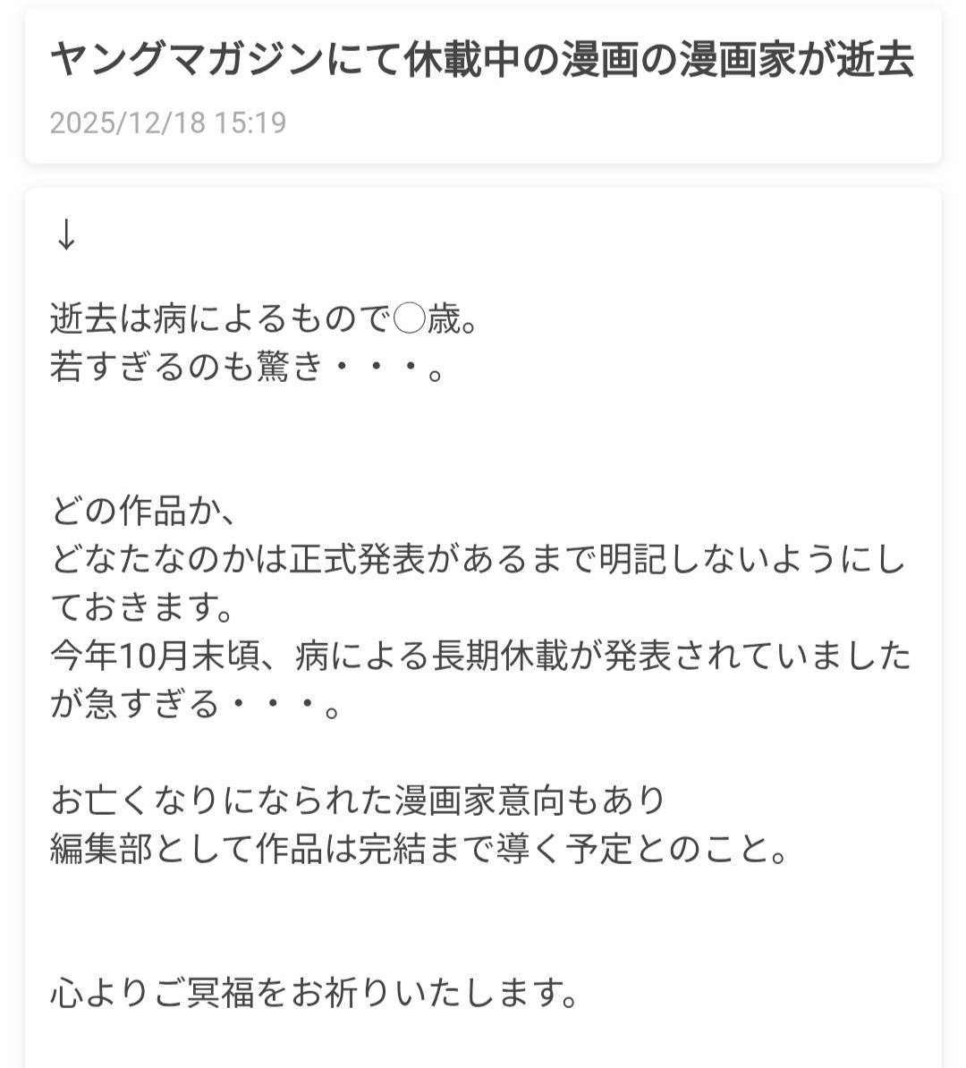 漫画が描ける状態からそんなに早く病気が進行して亡くなるのか