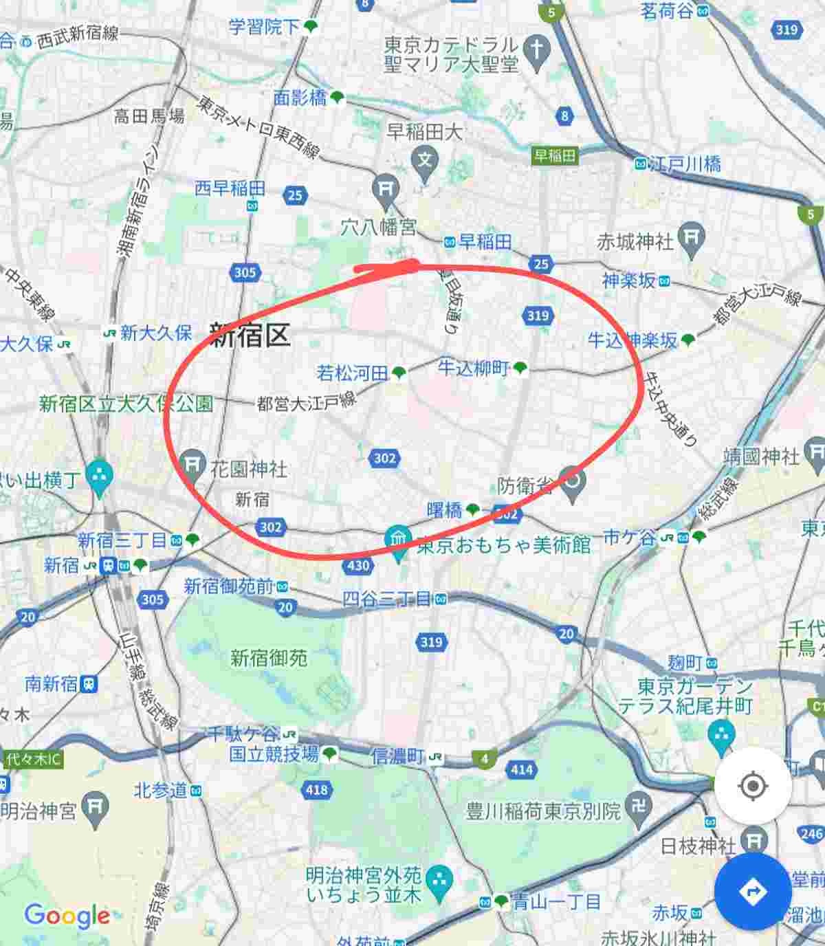 新宿区内ではあるけどそこら辺は新宿ではないし