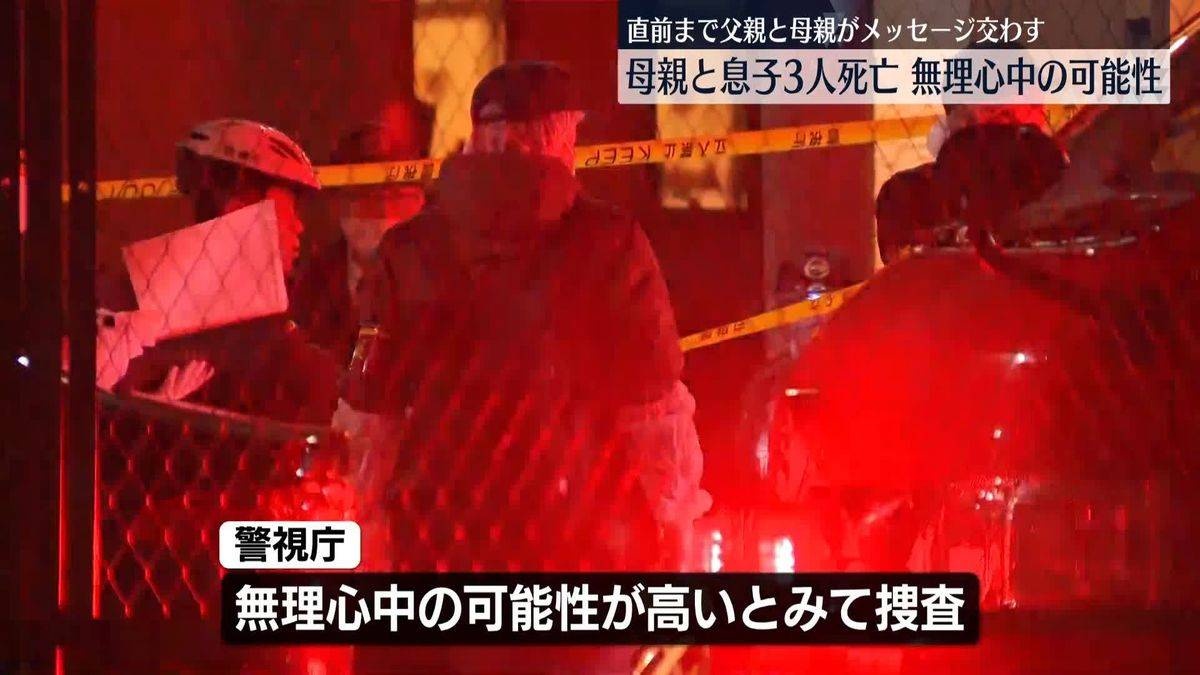 母親と息子3人死亡、無理心中の可能性 直前まで父親と母親がメッセージ交わす 東京・西東京市