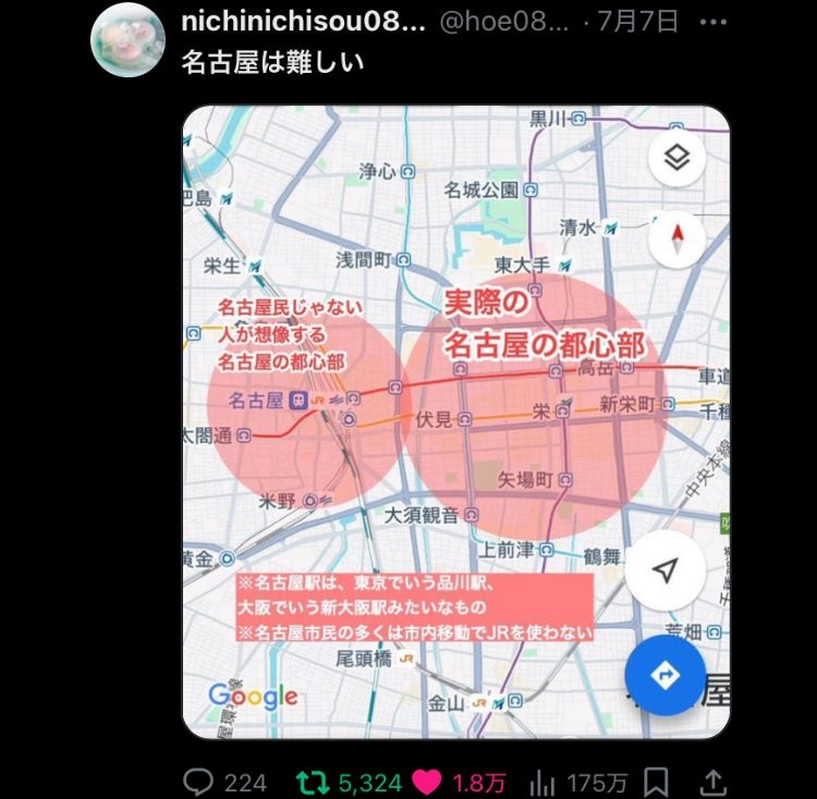 俺らが新幹線から見てた名古屋は名古屋じゃなく名古屋の街外れだった模様