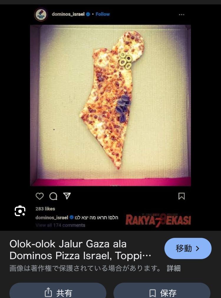 インスタでガザを馬鹿にする投稿をするドミノピザさん