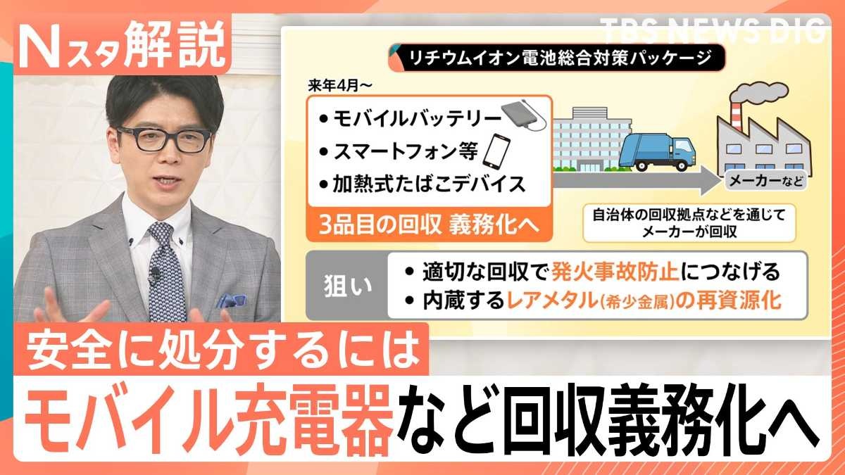 「スマホ」や「モバイル充電器」など回収義務化へ “リチウムイオン電池”火災防止&レアメタルの確保に【Nスタ解説】(TBS NEWS DIG Powered by JNN) – Yahoo!ニュース