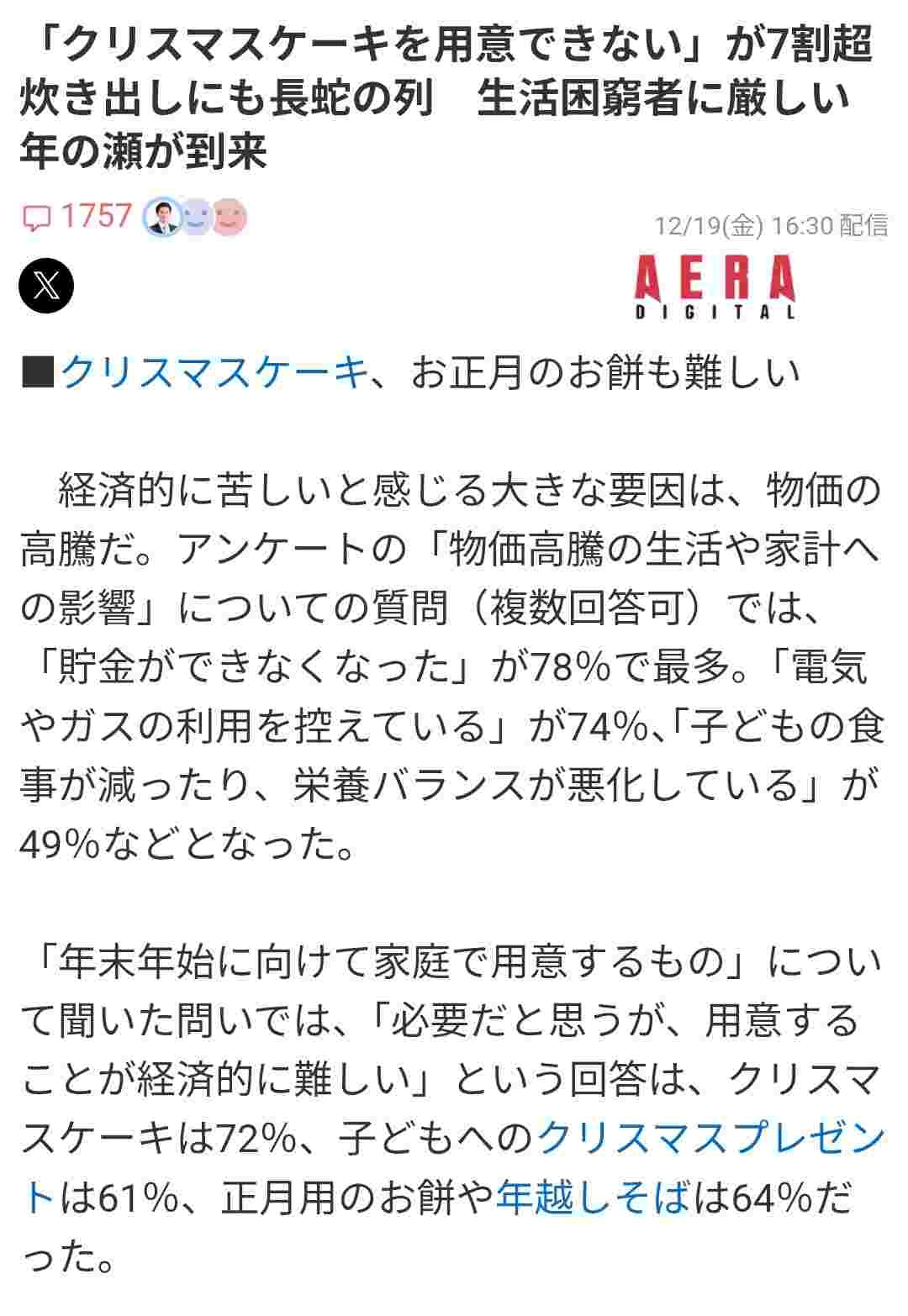 困窮してなくてもクリスマスケーキなんて食わんだろ