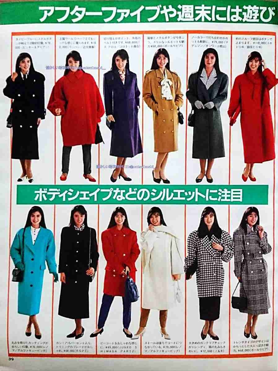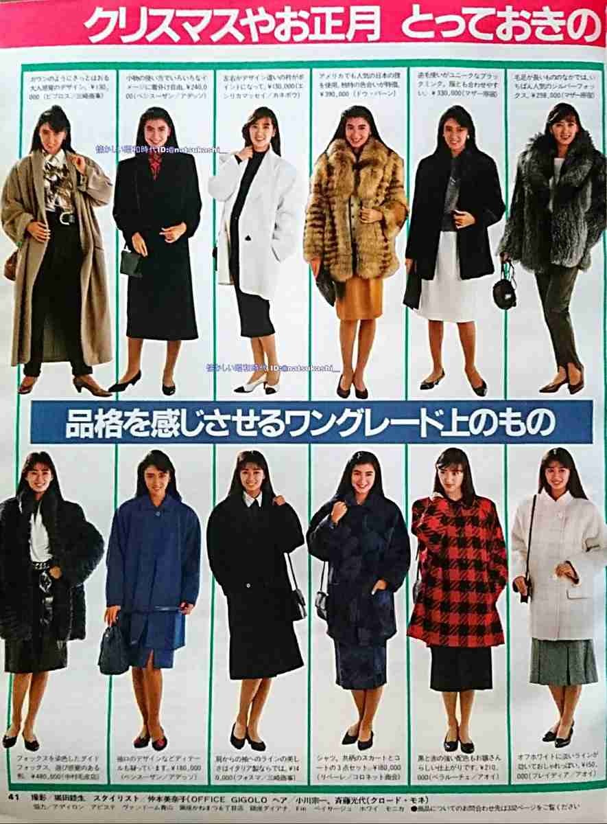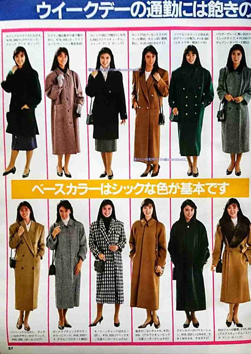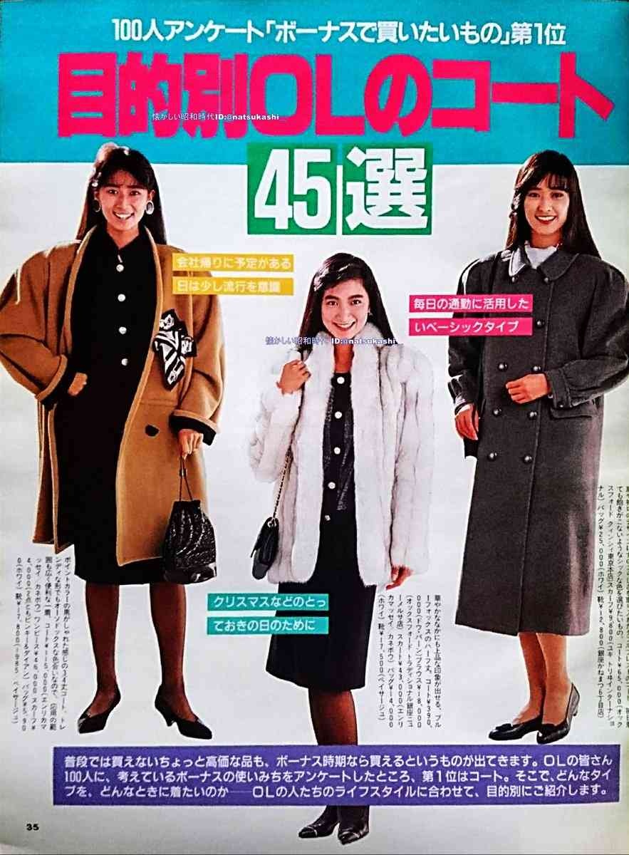 ウィークデーや休日、クリスマスなどのコート。丈が長すぎるけどこの頃はこれが最先端です。そしてショルダーバッグ。