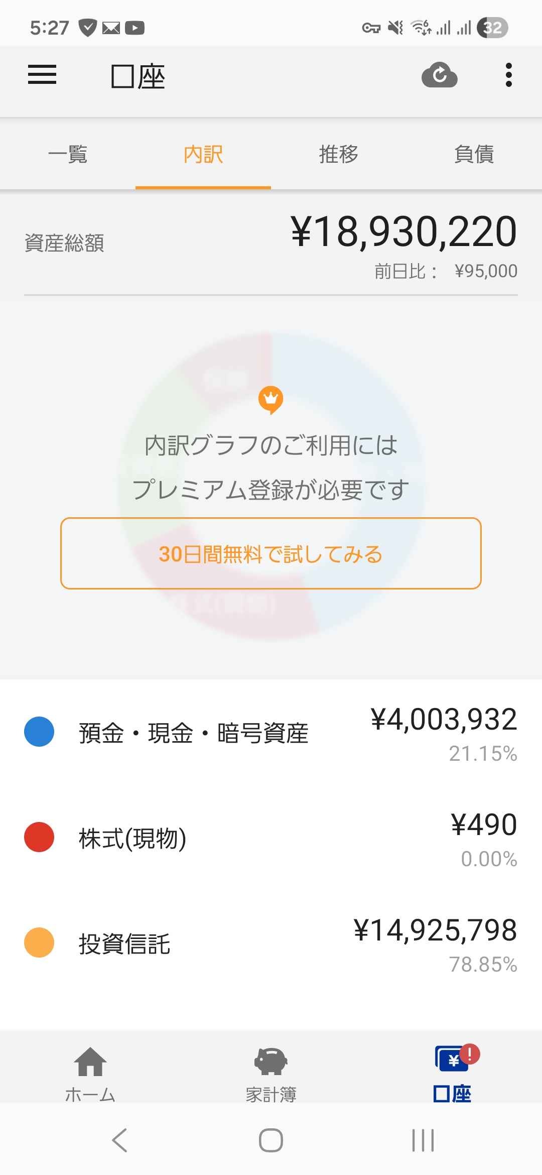 ちょっと現金の比率が低い気もする