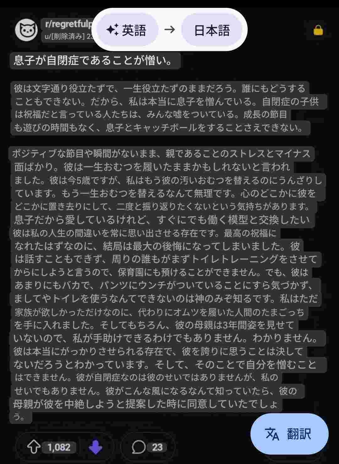 自閉症の親、ぶっちゃける「どっかに捨ててきて、動かない模型にでも交換したい。中絶した方がよかった」