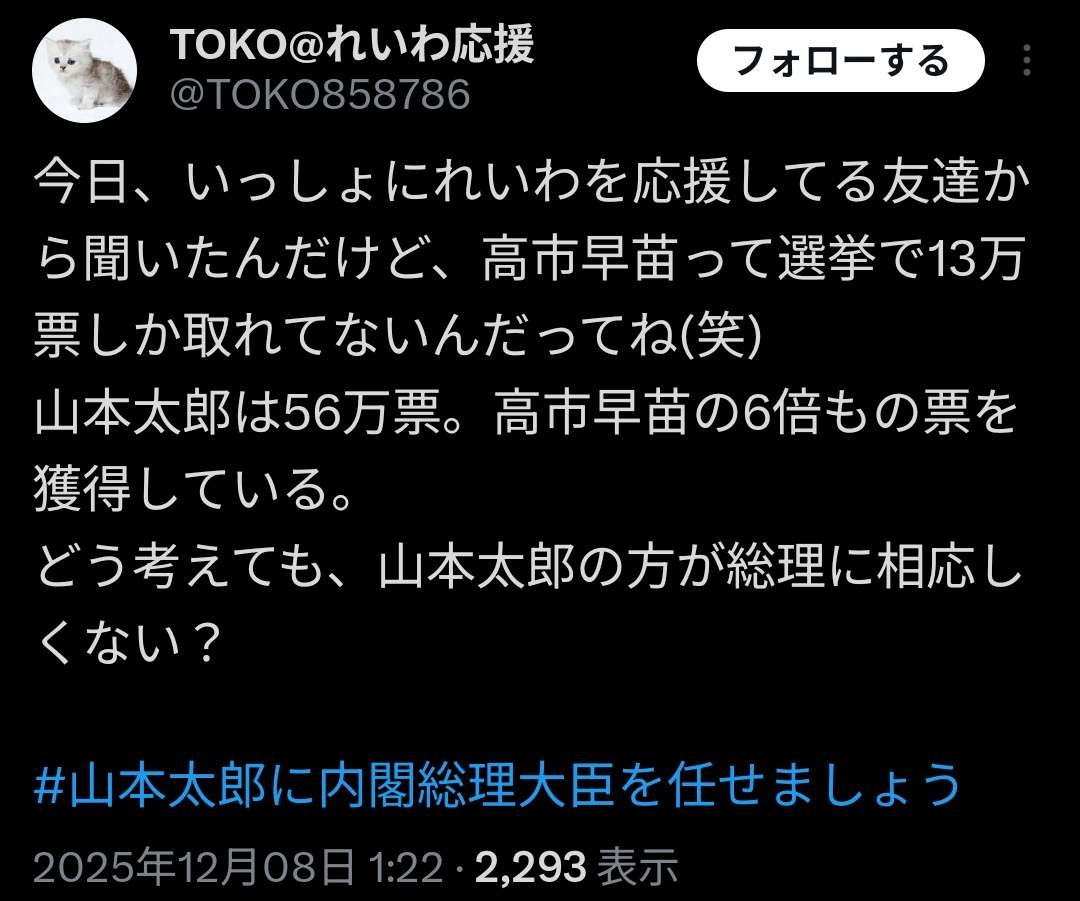 高市なんかより山本太郎さんこそ総理大臣にふさわしい