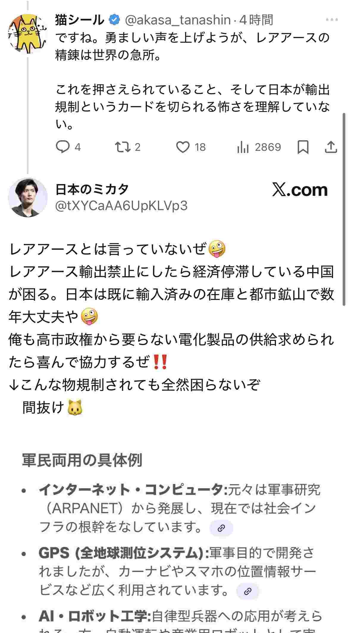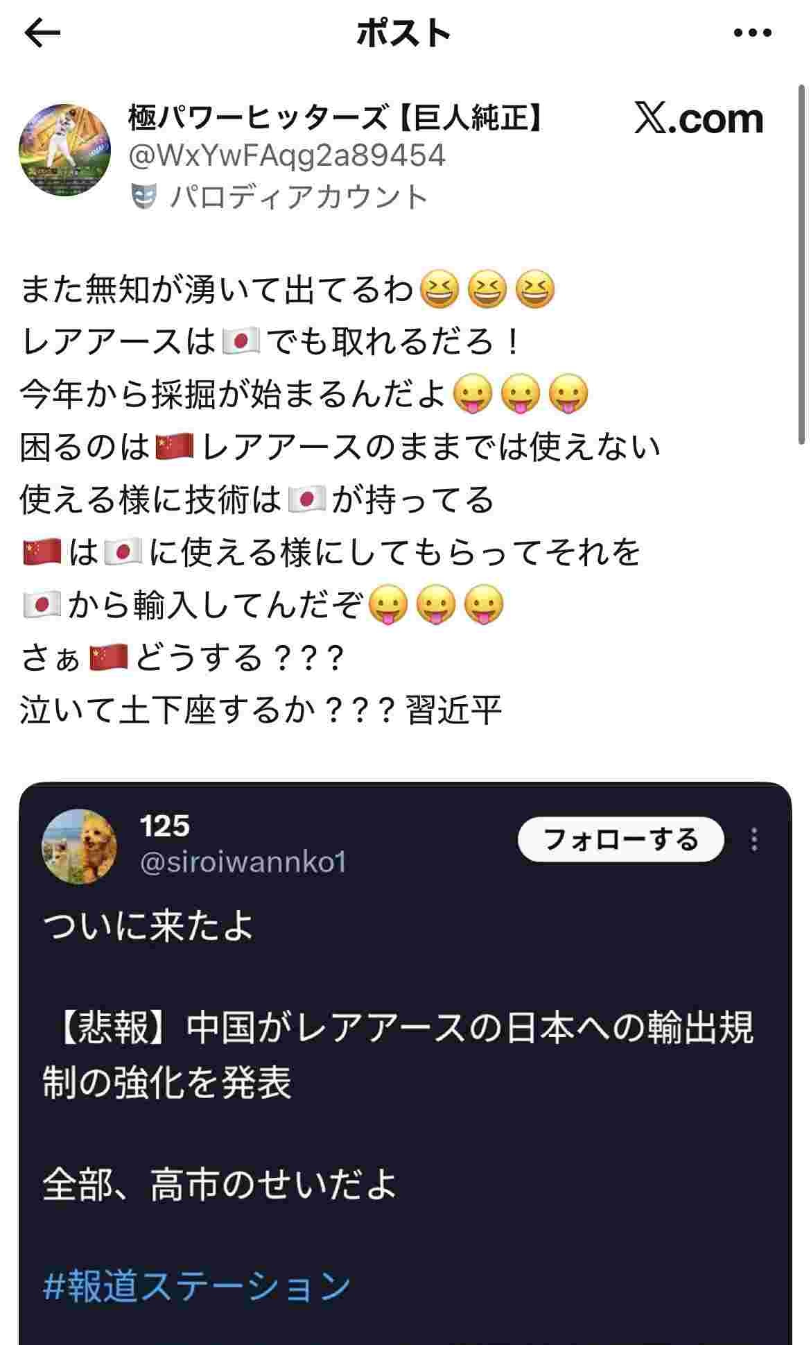 レアアースは需要過多でむしろ供給が追いついてないほどなんだがどういう理屈で中国が困るんだよ